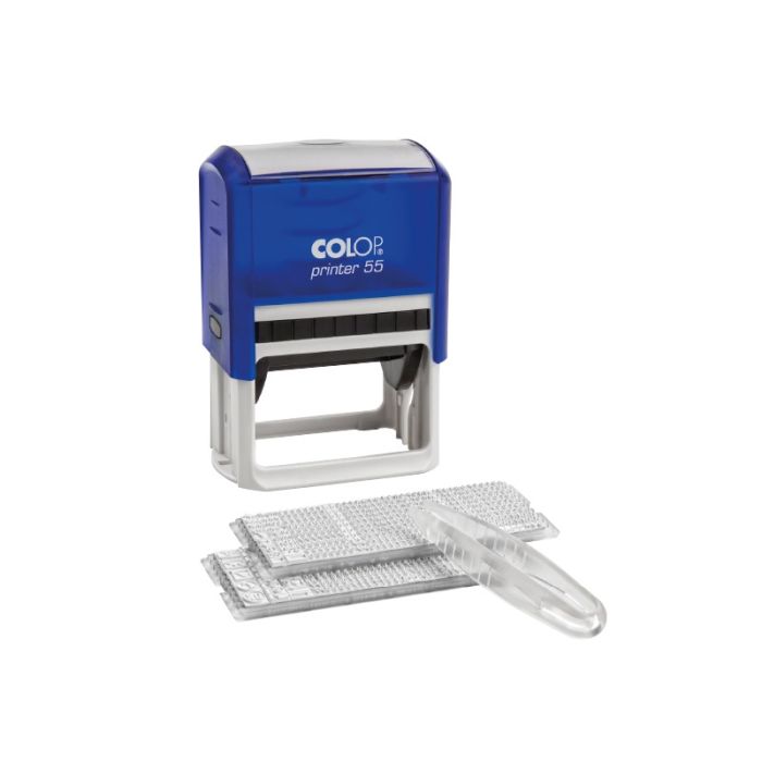 Drukarenka Printer 55 to większy model z serii Printer, zaprojektowany z myślą o częstych zmianach treści. Zestaw czcionek (litery, cyfry, symbole specjalne) oraz dołączona pęseta pozwalają łatwo i szybko dostosować zawartość pieczątki do aktualnych potrzeb.