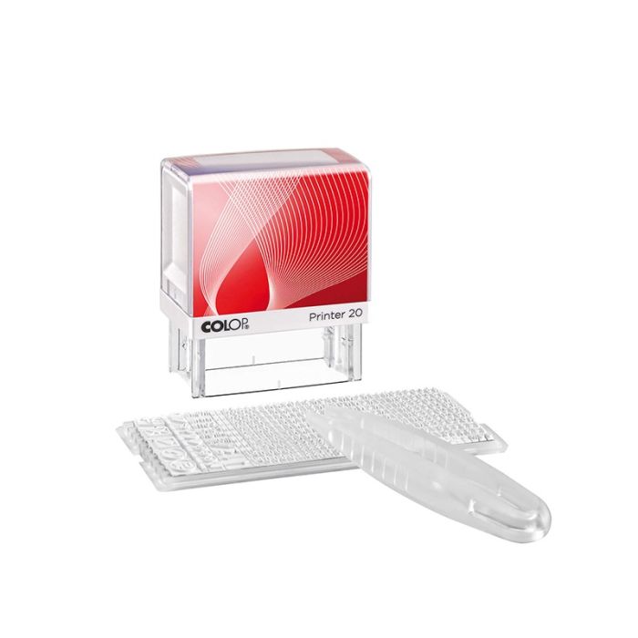 Drukarenka Printer IQ 20/1 to nowoczesna pieczątka z serii Printer IQ, umożliwiająca samodzielne układanie treści. W zestawie znajdują się litery, cyfry, znaki specjalne (m.in. e-mail, fax, piktogramy) oraz pęseta, co pozwala szybko i wygodnie zmieniać zawartość pieczątki.
