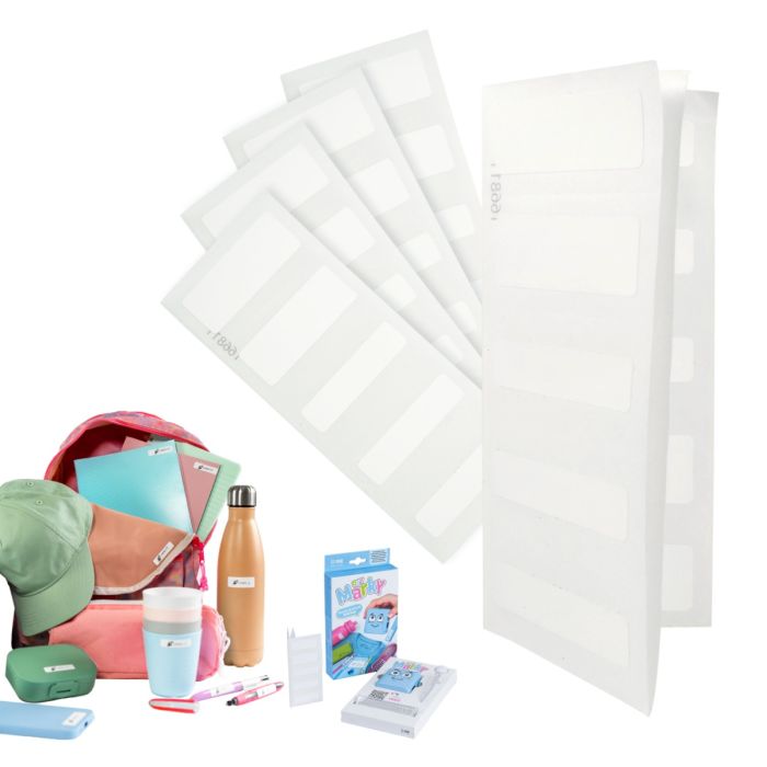 Etykiety wodoodporne COLOP My Marky / DIY Marky umożliwiają szybkie, estetyczne i trwałe oznaczanie odzieży oraz przedmiotów codziennego użytku. Dzięki specjalnej powłoce można je stosować na różnorodnych powierzchniach – od tkanin po plastik czy metal. Są w pełni kompatybilne z wybranymi modelami pieczątek, co pozwala na łatwe i czytelne personalizowanie rzeczy.