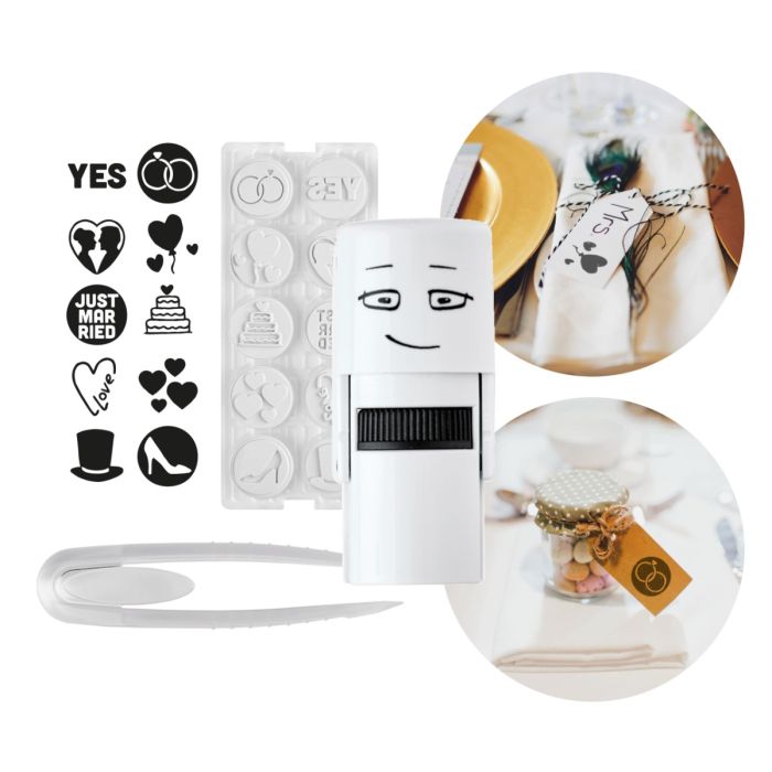 Powiedz: tak! Little NIO Pobieramy Się - to pieczątka z zestawem dziesięciu wymiennych wzorów o tematyce ślubnej