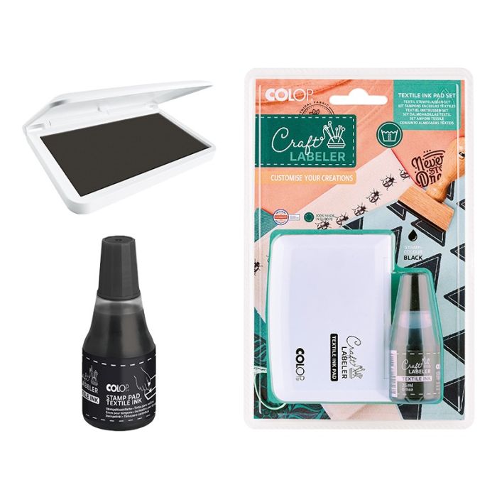 Poduszka z tuszem + czarny tusz 25 ml do tkanin COLOP Craft Labeler